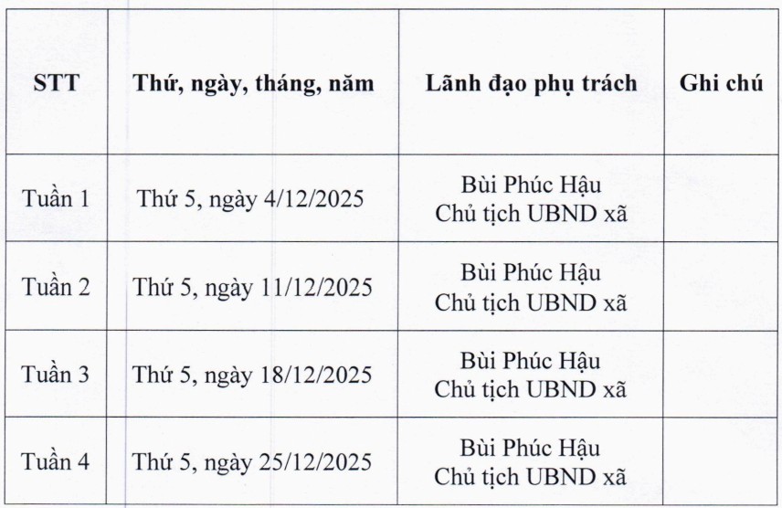 LỊCH TIẾP CÔNG DÂN THÁNG 9/2025 CỦA UBND XÃ